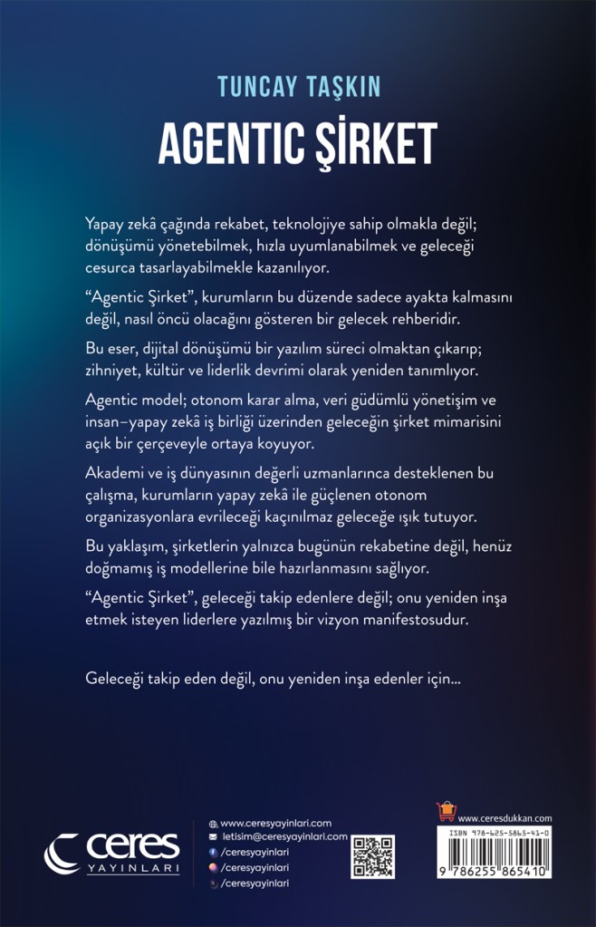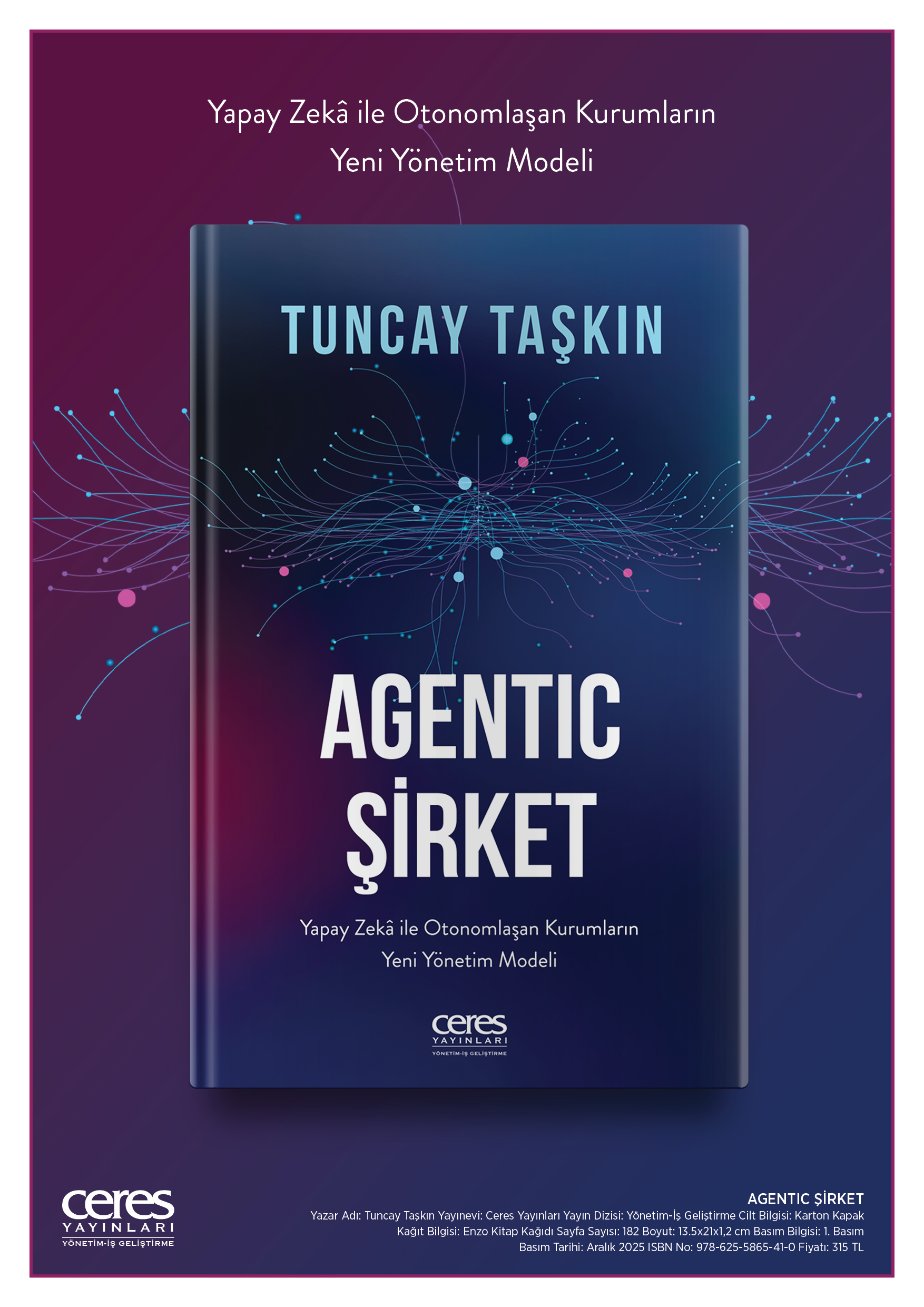 Tuncay Taşkın, Agentic Şirket – Yapay Zekâ ile Otonomlaşan Kurumların Yeni Yönetim Modeli kitabının yazarıdır. Bu kitap Türkiye’de Ceres Resmî Dükkan, Kitapyurdu, D&R ve BKM Kitap ve diğer tüm kitap satış platformları ve mağazalarında satışa sunulmaktadır.